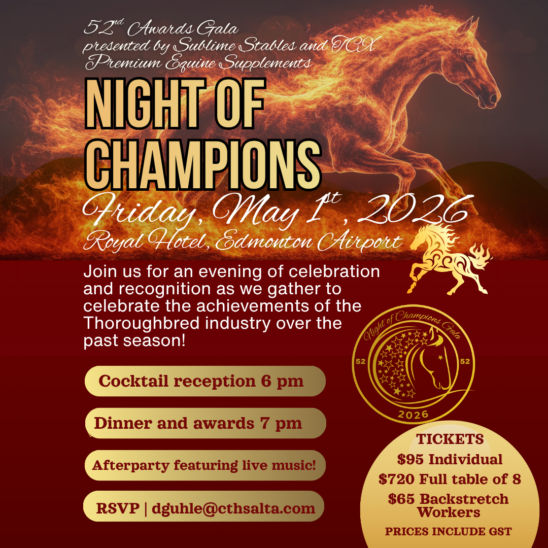 Join us for an unforgettable evening celebrating Alberta’s 2025 Thoroughbred Award winners.